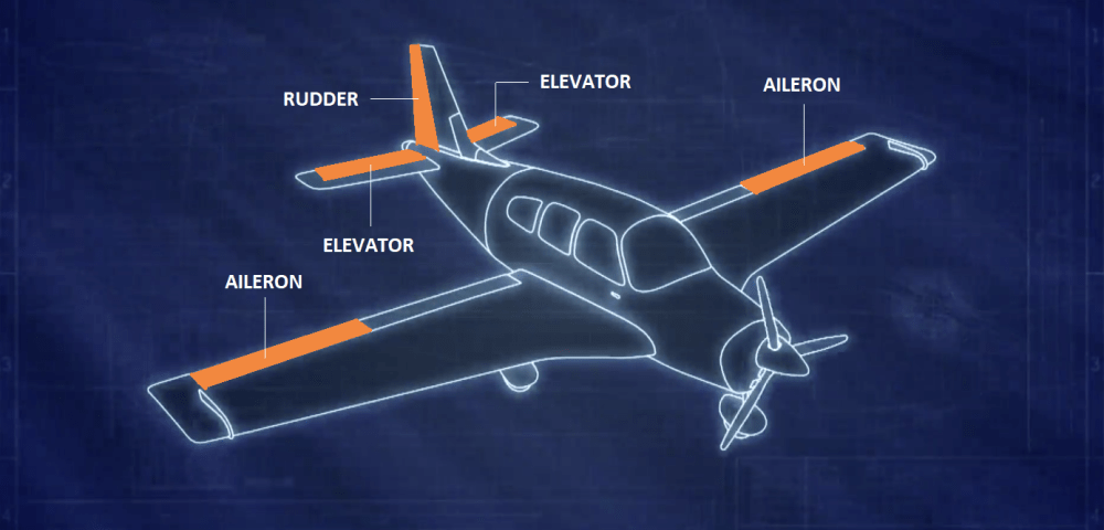 Above is the structure of how a typical plane works. It comprises of the three main components necessary for flight and control. The elevators are responsible for pitching up or down, the rudders for nosing left or right and the ailerons on the wings to control the roll of the plane side to side.